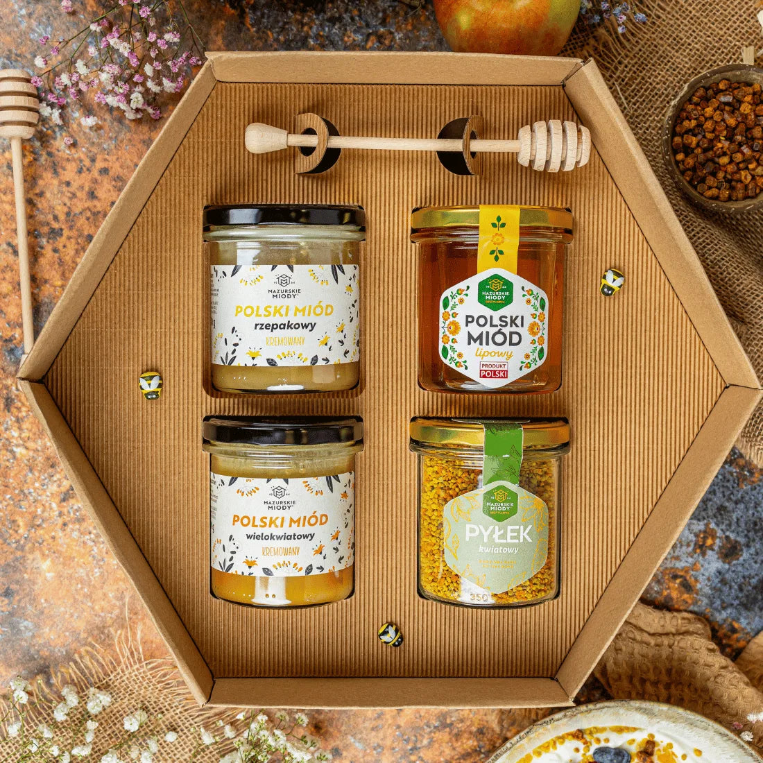 Zestaw prezentowy 3 Miody 400g i Pyłek kwiatowy 200 g