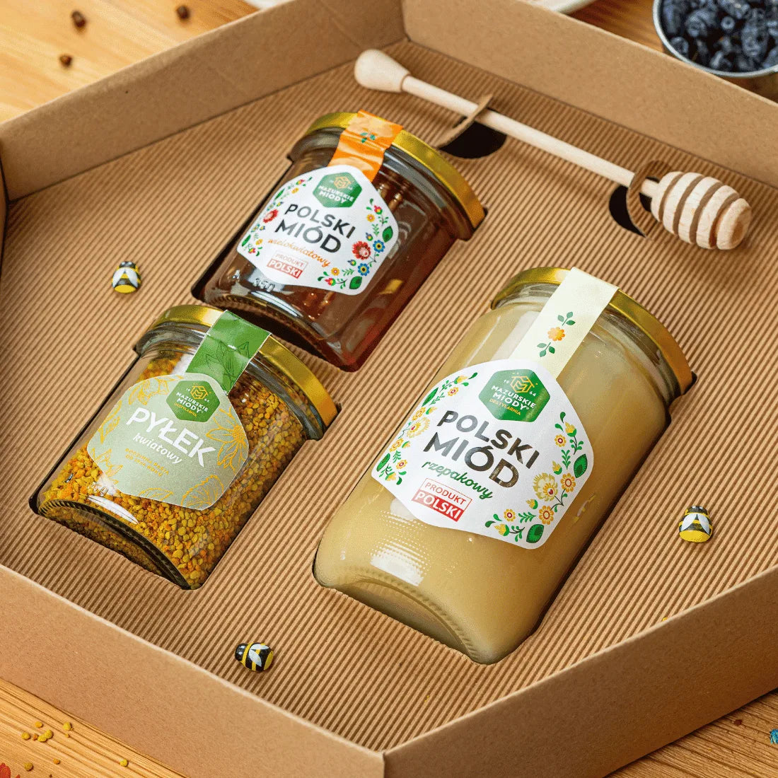 Zestaw prezentowy z Dużym Miodem, Miodem 400 g, Pyłkiem pszczelim 200 g